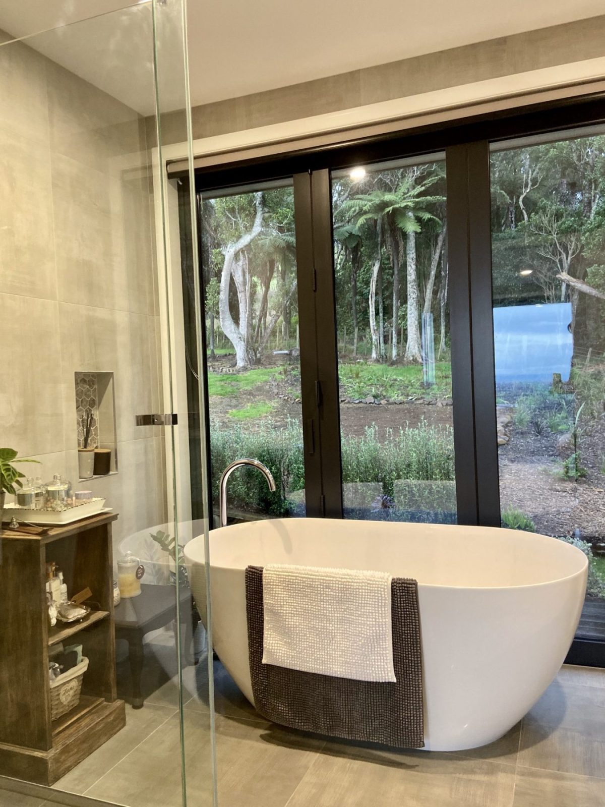 If you’re looking for a special spot with the most amazing view looking over Cambridge, this is probably your best opportunity around! Also for those who like a touch of luxury there’s a bathroom with generous amenities, where by you can open the doors back and look out into the bush as though you were right amongst it.