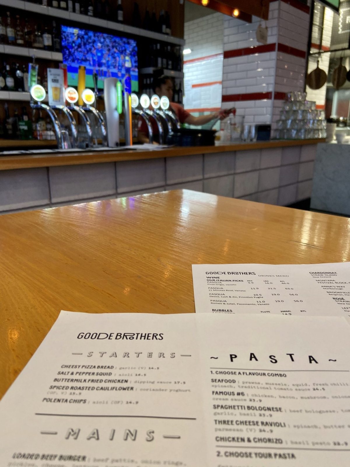 Visit the menu here – Good Brothers Menu. The bar features large screens showcasing rugby matches and cricket games. We like it here for a casual beer on a Sunday afternoon with bar snacks or a wine and pizza in the evening.