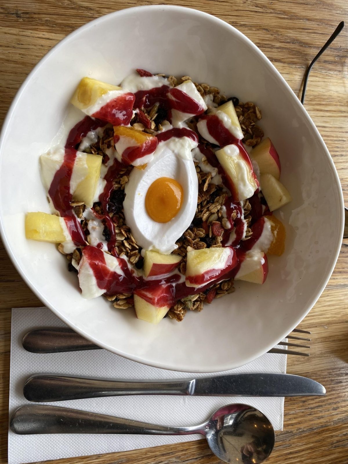 The restaurant sits right on the edge of the Viaduct, and in the early hours, the view really shines. Boats are still, the water catches the light, and the air feels fresh with just a hint of sea breeze. Inside, Giraffe feels relaxed — modern décor, wooden tones, and big windows that let the sunlight spill through. It’s not flashy or loud, which is probably why we keep coming back. It’s the sort of place where you can start the day slowly, with a coffee in hand and a view that makes you feel like you’re on holiday, even if you’re not.