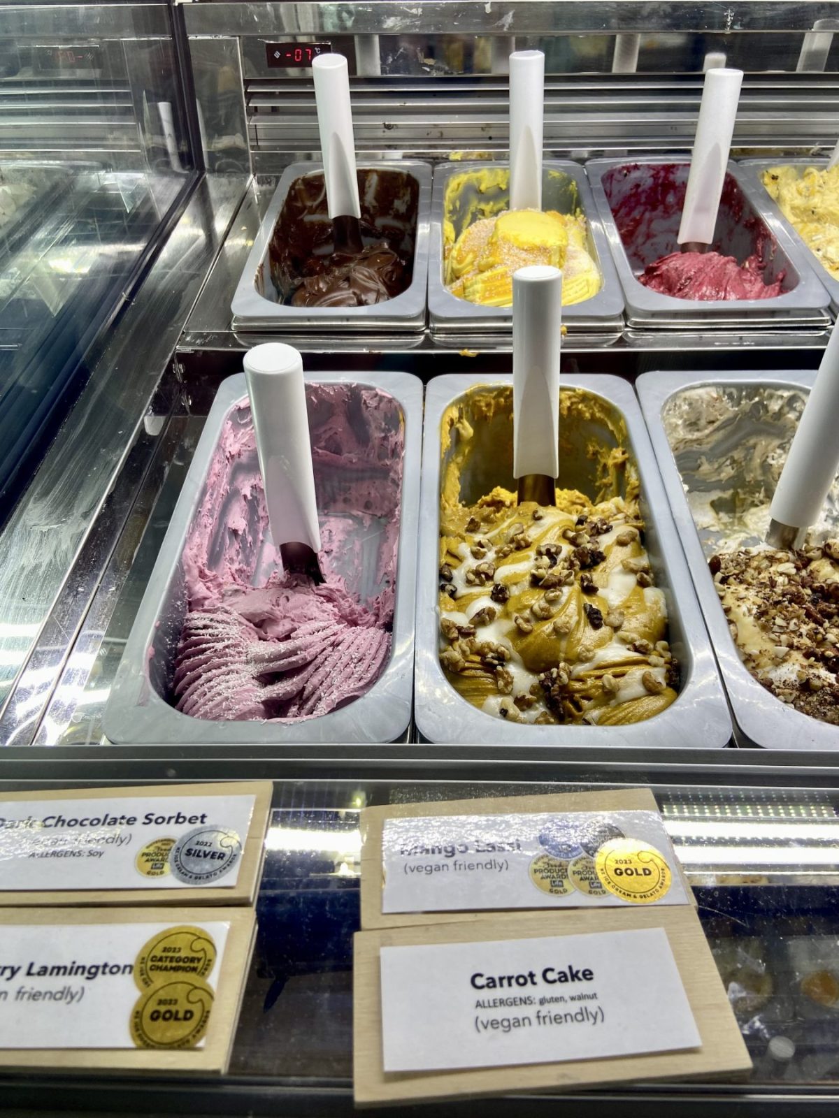 The extensive flavor range includes favorites like Pistachio, Raspberry Lamington, Speculoos, and Mango Lassi, alongside dairy-free delights such as Peanut Butter Chocolate and various vegan options. Little ‘Lato’s dynamic approach to flavor innovation ensures there’s always something new to try, from Gin Sorbet to Nutella Croissant.