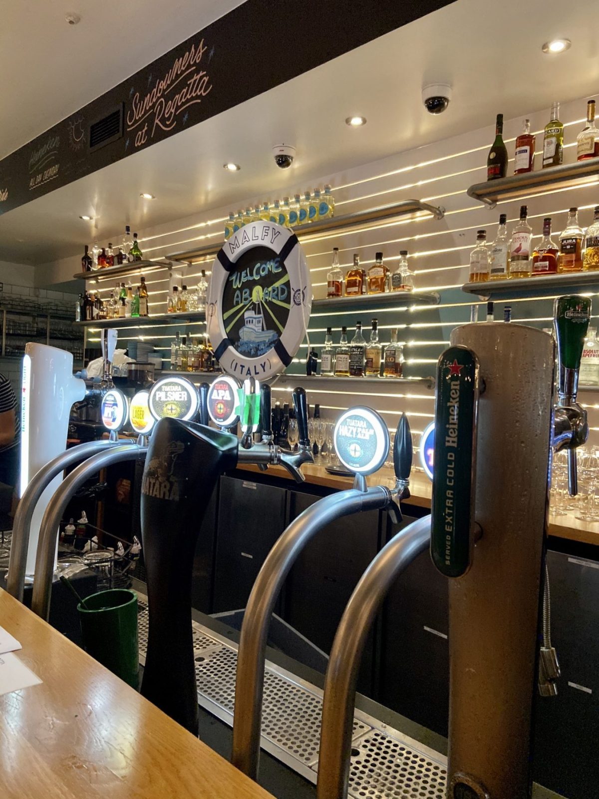 There’s lot’s of seating with both indoor and out door spaces to pick from. We love sitting by the window or on the balcony while sipping wine or bubbly and looking across to the beach. Regatta comes highly recommended from us.