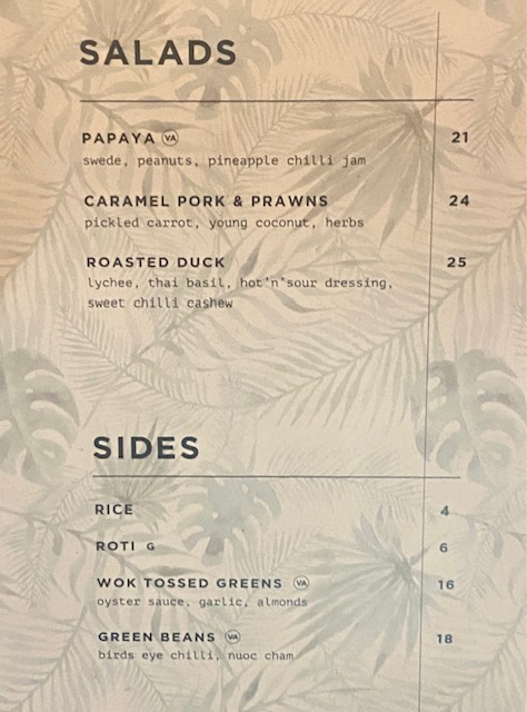 Some of the standout dishes on the menu include the Tom Kha Gai, a classic Thai coconut soup with lemongrass, mushroom, and chicken, and the Gado Gado, an Indonesian salad with mixed vegetables, boiled egg, and peanut sauce. For main course, the Green Curry with chicken and mixed vegetables is a must-try, as well as the grilled pork belly with a sticky tamarind glaze.